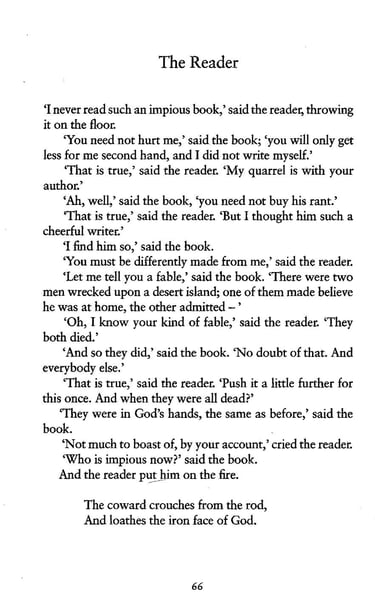 The Fables show us this celebrated author at his best - pithy, ironic, compassionate, the master of unforgettable phrases and actions. These are not stories to read quickly once; they are meant to shock us so that we drop our preconceptions and see the world with fresh eyes.